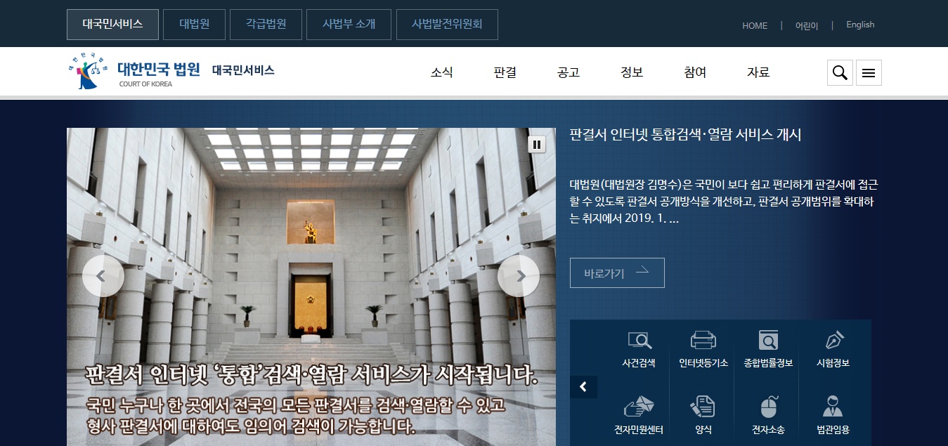 “Supreme Court Case” 또는 “Supreme Court Law”를 검색하기만 하면 됩니다. 그런데 대법원만 검색하면 상단에 대법원 홈페이지가 나오는데, 여기로 가면 법학을 찾기가 그리 쉽지 않다. 따라서 보다 상세한 검색어를 입력하는 것이 좋습니다.