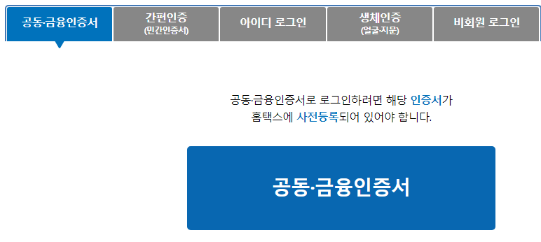 공인인증서/공인인증서, 기본인증(사설인증서), 아이디, 생체인증(얼굴/지문), 비회원 등으로 로그인하다.