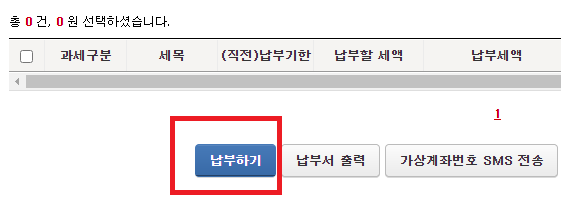 납세 > 국세납부 > 납부할 세액조회/납부클릭