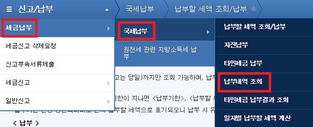 양도세 납부확인서 납세 > 국세납부 > 납부내역 조회당신은 그것을 확인할 수 있습니다