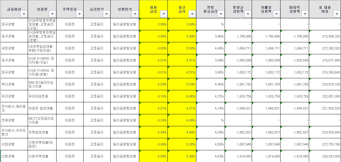 부족한 자금을 메우기에는 좋은데 금리가 계속 오를수록 대출금액의 이자율도 점점 높아지는 추세라 시간을 내기가 거의 불가능에 가깝다고 볼 수 있습니다. , 온라인으로 은행 모기지론을 비교하는 것이 매우 편리하다고 합니다.