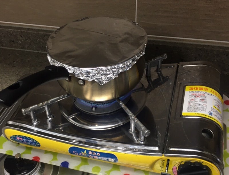이사 온 아파트 가스레인지가 예민해 몇 가지 에피소드를 방출했고 결국 휴대용 버너로 볶게 됐다.