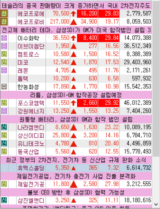 오늘은 두 번째 배터리 축제였습니다. 전고체전지, 원통형전지, 리튬 관련주는 3월 8일 삼성SDI와 GM이 3월 8일 양해각서(MOU)를 체결하고 미국에서 합작법인을 설립한 소식에 상승세를 보였다.