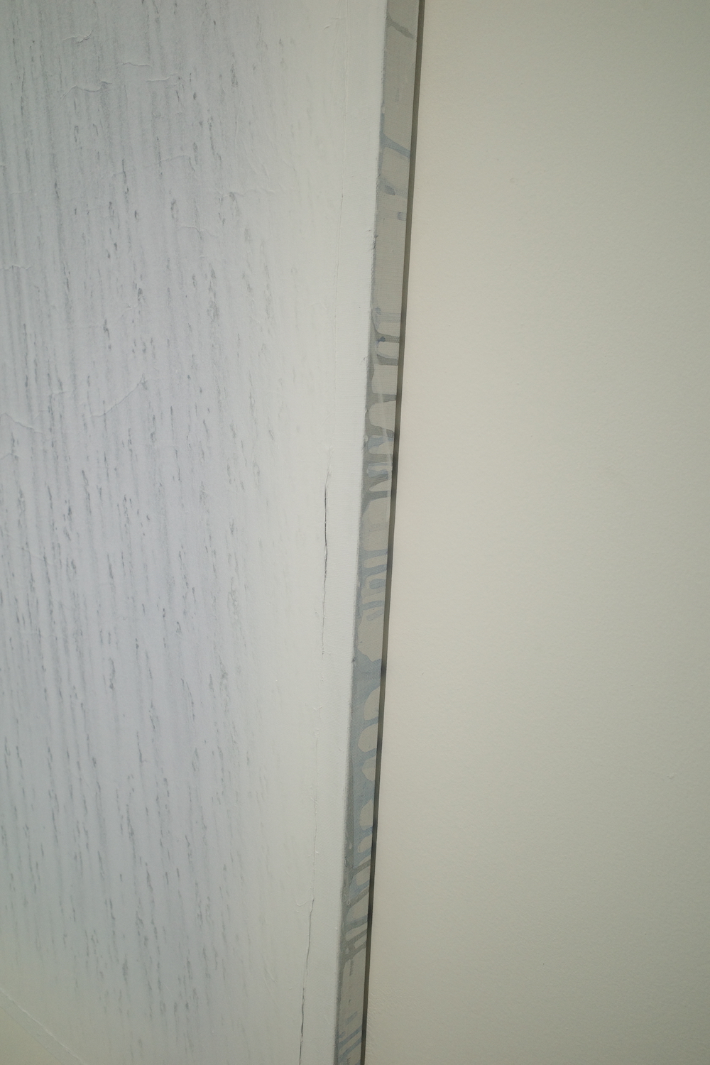 처음 봤을 때는 흰색 배경에 파란색 물감을 칠한 것 같았는데, 캔버스 옆면을 보면 파란색 배경에 흰색 물감을 발라 작품을 만든 것 같다. 이것은 그림에서 느껴지는 이상한 투명성을 만들었습니다.
